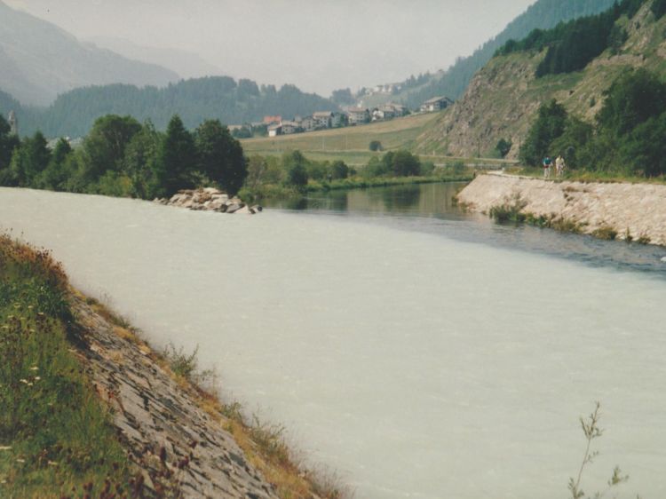 Hoch oben in Graubünden beginnt es, hier muss im Zentralmassiv der Alpen das Schweizer Wasser sich entscheiden: Nordsee, Adria oder Schwarzes Meer. Vor sattsam Jahren sind wir ihm entlang gefahren, dem bescheidenen Bächlein aus dem Lunghinsee. Wir bestaunten die Farbe, die bei St. Moritz die Gletschermilch der Bernina ihm verpasst – sein Name bleibt erhalten und ab hier ist er der stolze „Grüne Inn“.