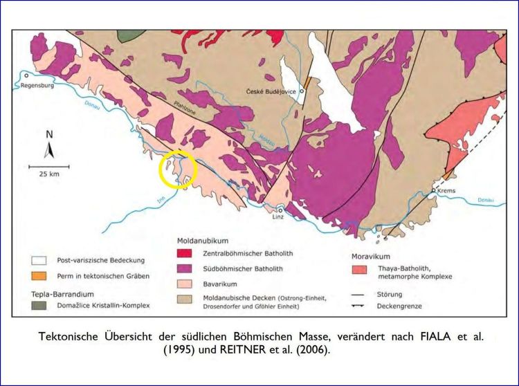 Die besondere Herausforderung vor dem Ziel ist der beginnende Granit der Böhmischen Masse in ihren südlichen Rändern. Bavarikum nennen das Gebiet die Geologen in einem Tektonischen Überblick: