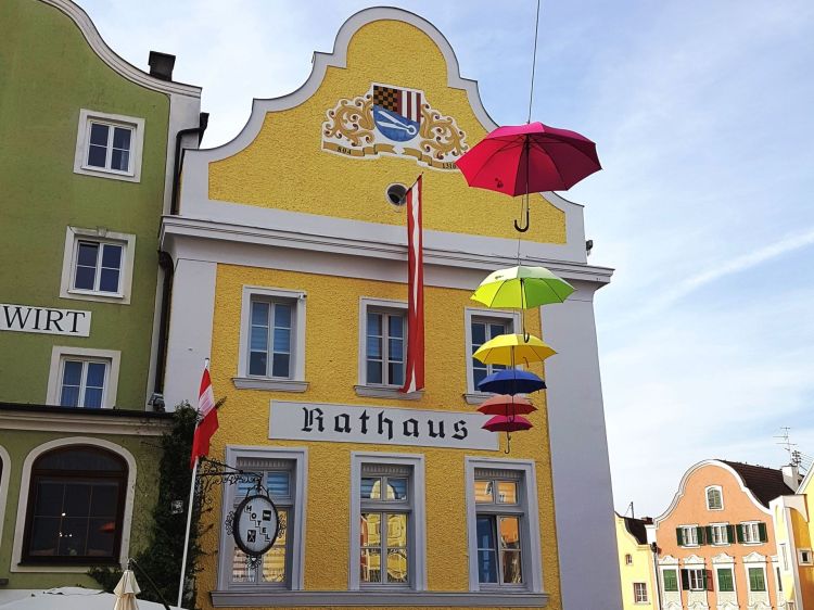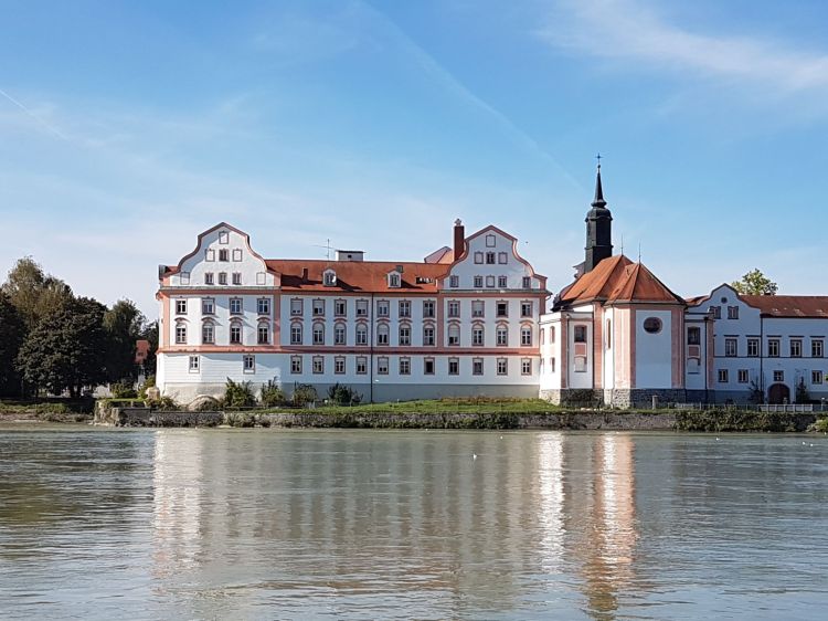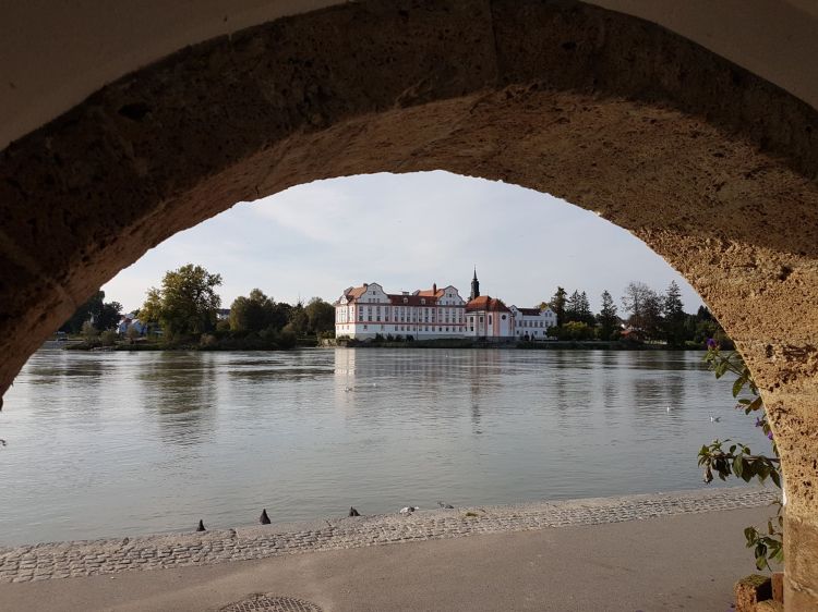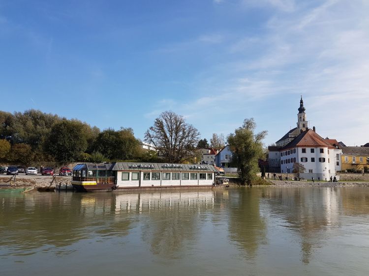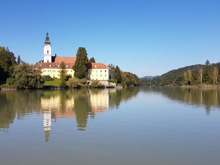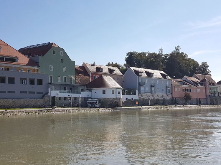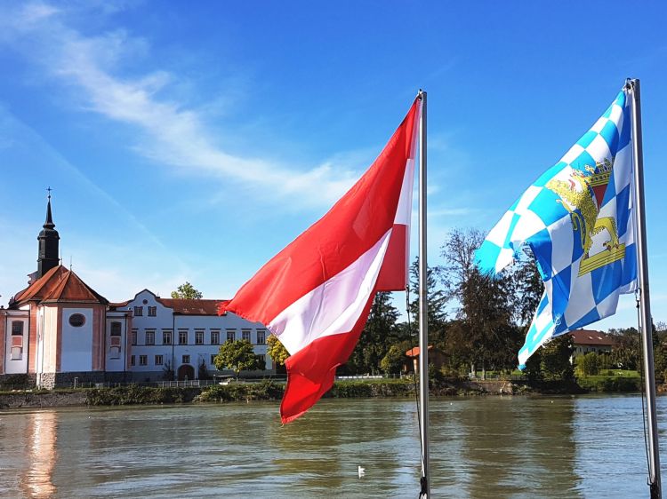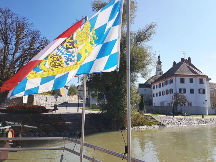 Wir suchen uns – Maps sei nicht gedankt, es führt uns vorerst in die Irre – die Bootsanlegestelle von Kapitän Schaurecker in Schärding. Sie liegt mittig zwischen den beiden Innbrücken genau gegenüber dem Kloster Neuhaus oder etwas weiter gefasst wiederum genau zwischen der Mündung der Rott auf bayrischer und der der Pram auf oberösterreichischer Seite: