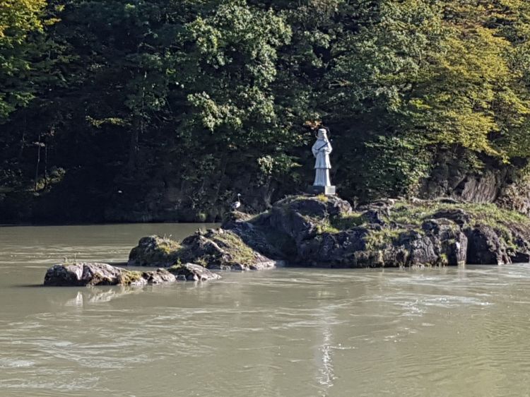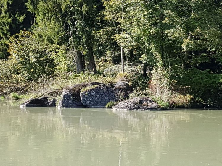 Was würde zum Abschluss meiner Nachmittagsgeschichte besser passen, als eine Aufnahme des auf einem mächtigen Huchen reitenden göttlichen Aenus in gelungener Darstellung des personifizierten Inns: