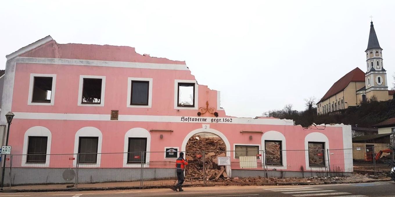Lange Jahre zierte das Haus in der Unteren Hofmark mit seiner breiten Vorderfront den Dorfplatz. Nun ist seine Zeit vorbei. Es darf 2021 nicht mehr erleben. Ein paar Bilder mit ergänzendem Text dokumentieren den Abbruch im folgenden Bericht: Dezember 2020: Das traurige Ende der HOFTAVERNE in Ranshofen